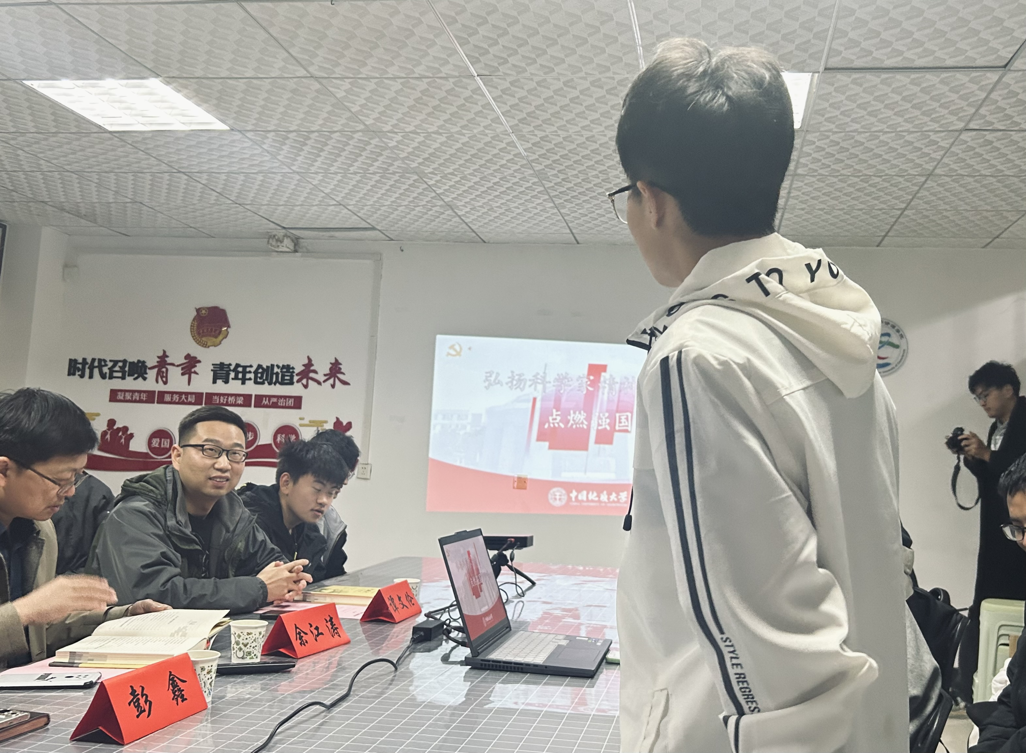 (通讯员 裴朔焓 彭鑫)为深入学习宣传贯彻党的二十大精神和习近平总书记关于弘扬科学家精神的重要指示,落实“立德树人”根本任务,进一步引导广大青年树立远大志向,承担当代青年使命,近日,雷竞技官网在线2023级资源能源五班在资源·青年之家开展“弘扬科学家精神,点燃强国复兴梦”主题团会。出版社副社长余江涛、雷竞技官网在线党委副书记谭文伦、辅导员彭鑫及班级全体同学参会。