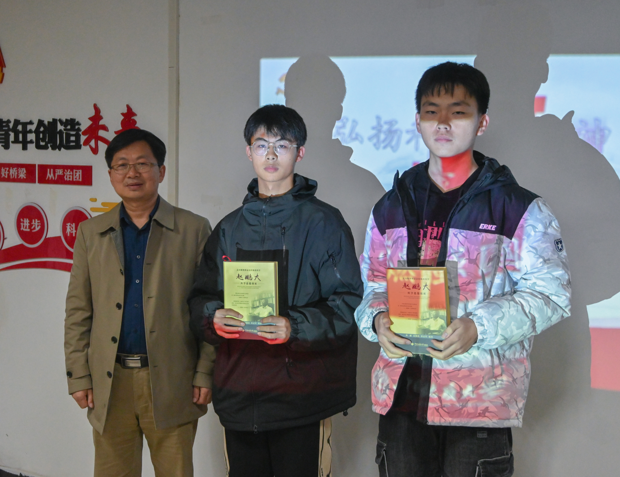 出版社副社长余江涛勉励同学不忘来时路,坚定未来路。他表示,大学之大,在于大师,学校教授、老师的渊博知识构成了我们的知识框架和底座,是宝贵的精神财富,而学校出版社让他们的精神、事迹撰写成了书籍,延续起这样伟大而渊博的文明,此次出版的《赵鹏大科学思想探析》书中讲述赵院士地质人生、地质科学思想、地质教育思想和地质哲学思想,有助于理工科同学们在钻研专业奥秘的同时也能陶冶情操,帮助同学们全方位发展和精神理想的觉悟与升华。随后,余江涛老师为02D235班同学赠书。