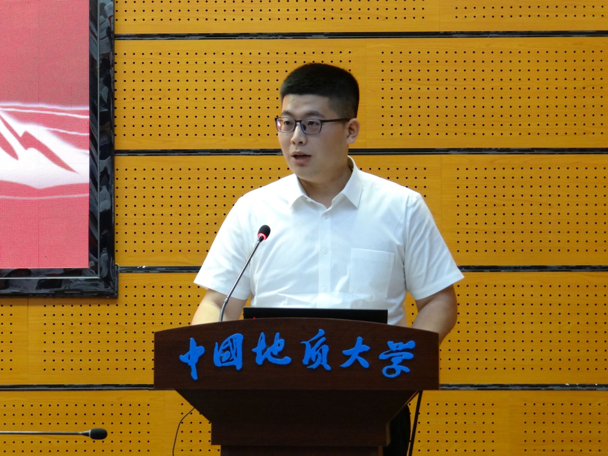 学生代表、雷竞技官网在线2023级博士研究生刘桐发言。他结合自身科研实践经历,分享了从本科阶段到现在博士研究生前后四次参与培育工程的成长感悟。他谈到,从最初作为志愿者观摩知识竞赛的激动,到亲身参与岩矿鉴定、科普作品创作等多项赛事,让他深刻体会到“培育工程”与专业领域的紧密对接。他呼吁同学们在实践中,涵养创新思维,夯实专业基础,勇担资源报国使命。