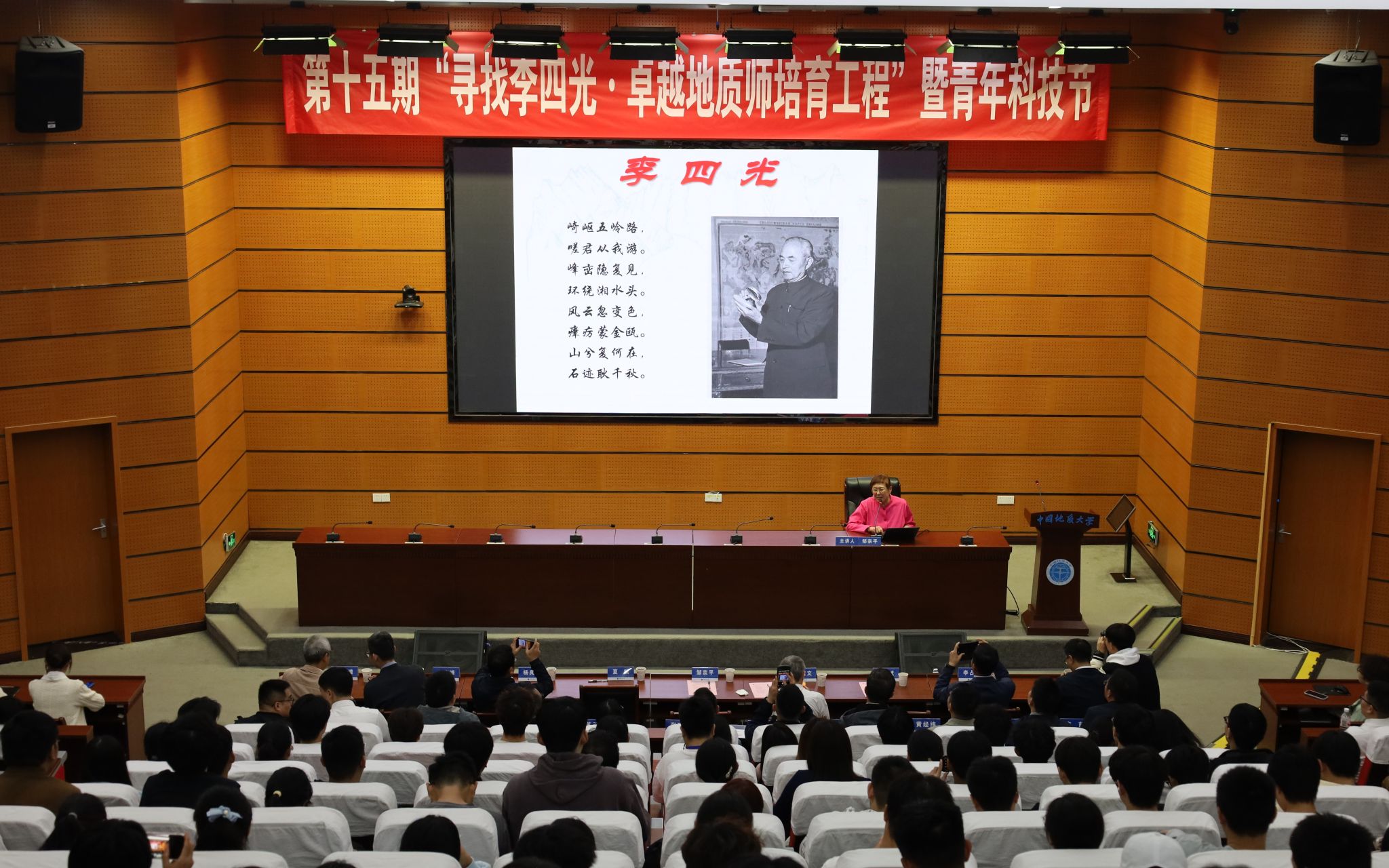(通讯员 陈嘉昕 张萍萍 刘睿 陈宇 摄影 张少龙 陈抒言 常宇涵)10月16日,我们在南望山校区东教楼A0113教室举行第十五期“寻找李四光·卓越地质师培育工程”开幕式暨“李四光精神”报告会。中国科学家精神宣讲团成员、李四光纪念馆高级顾问、李四光先生外孙女邹宗平女士,李四光纪念馆黄启文先生,湖北省李四光研究会副秘书长、湖北省地质科学研究院副院长杨良哲,黄冈市李四光纪念馆办公室主任夏炜,我们副校长夏帆,图书档案与文博部部长帅斌,党委学工部副部长王海峰、校史馆副馆长苏玉微,湖北名师徐思煌教授,雷竞技官网在线党委书记汪再奇、院长李占轲,十五期参赛团队及师生代表出席活动。